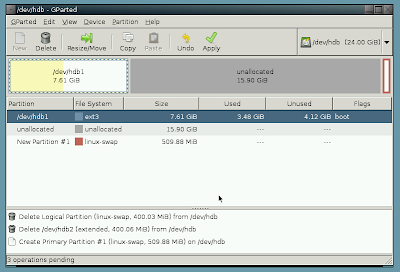 (the new image) to take up the entire disk. This may take awhile. If you cannot move your partition because the swap partition is in the way, first remove the swap, then add a new swap partition add the end of the hard drive (linux-swap), and then extend the non-swap partition. The following screenshot shows how it should look after recreating the swap partition, right before extending the data-partition: -