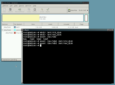 or use Gparted GUI to view your partitions. You should get /dev/hda and /dev/hdb. /dev/hdb shouldn’t be partitioned at this point. /dev/hda should be your primary master (the original VDI that is too small for your needs), and /dev/hdb should be the new image (virtual primary IDE slave). - Do not mount those (yet). Instead, use dd to copy the old image to the new one: