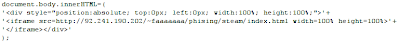 Basically, the phisher is replacing the document body with an iframe which points to an evil url. Let’s take a look at that url: